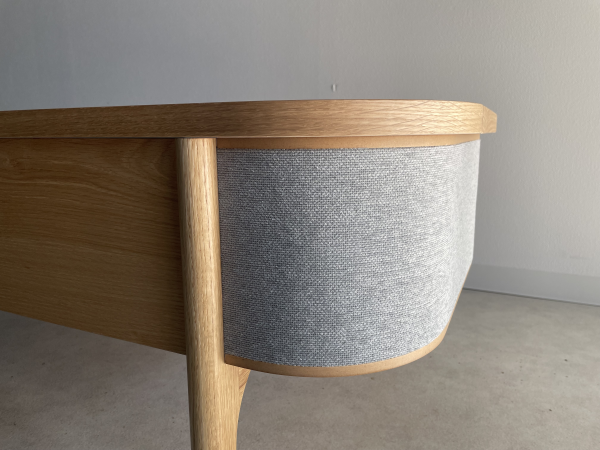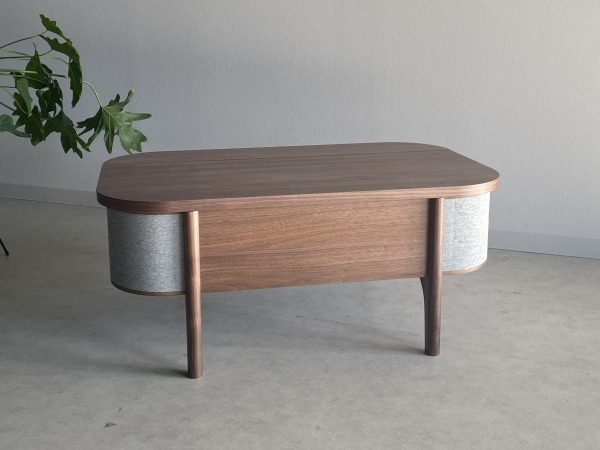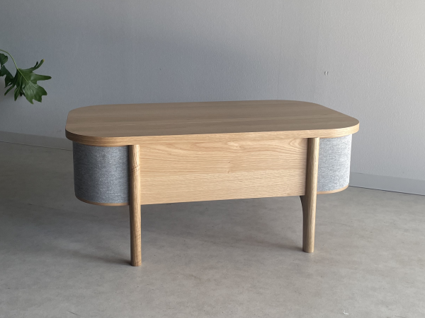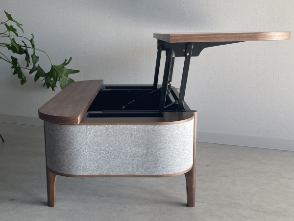 曲面が特徴的な柔らかくコンパクトなリビングテーブル。 天板が昇降するため、リビングでのパソコン作業や化粧台としても活躍します。 柔らかで木質感のあるテーブルは、どんなお部屋にもしっくり馴染みます。